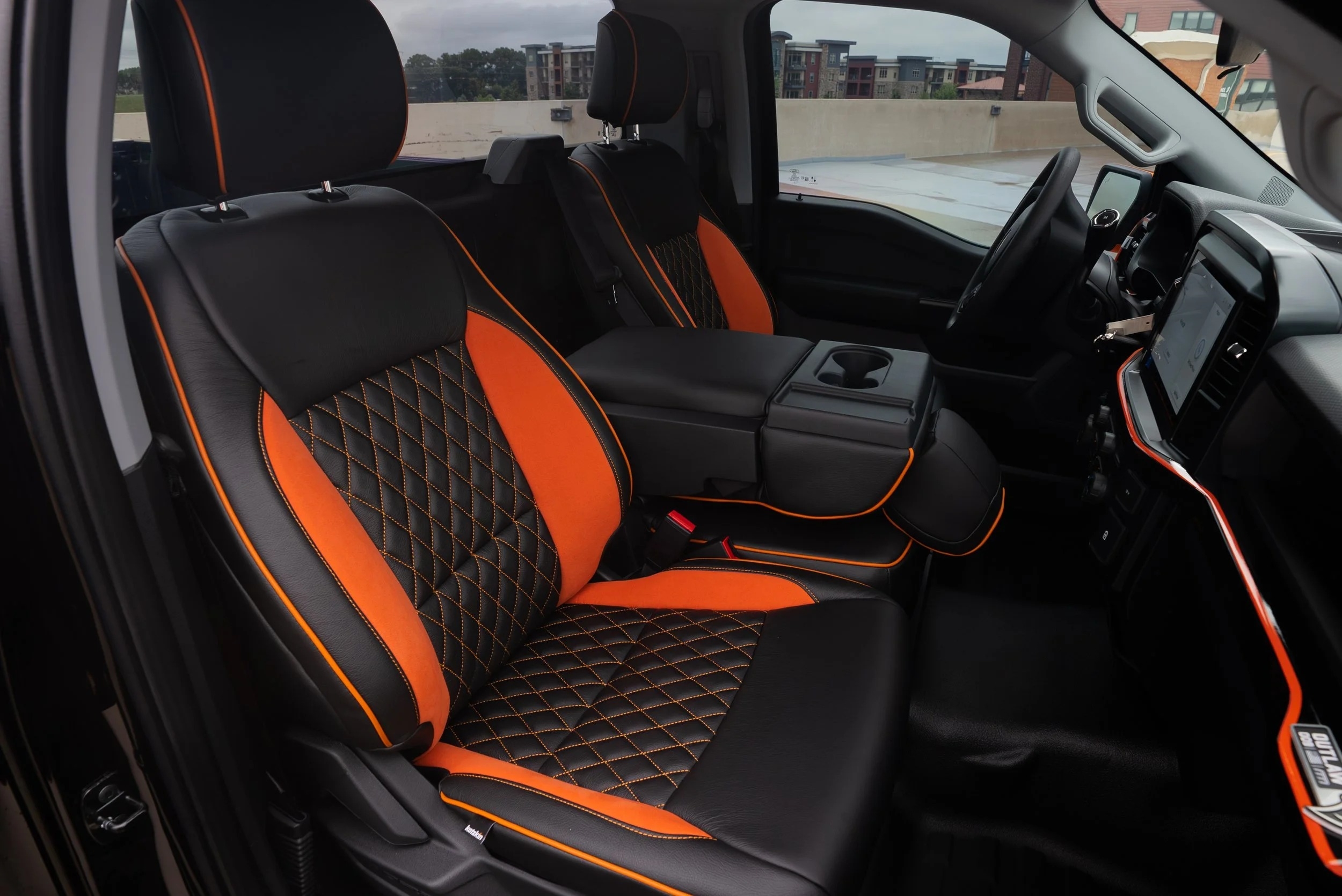 - Custom Black and Orange Leather Seats