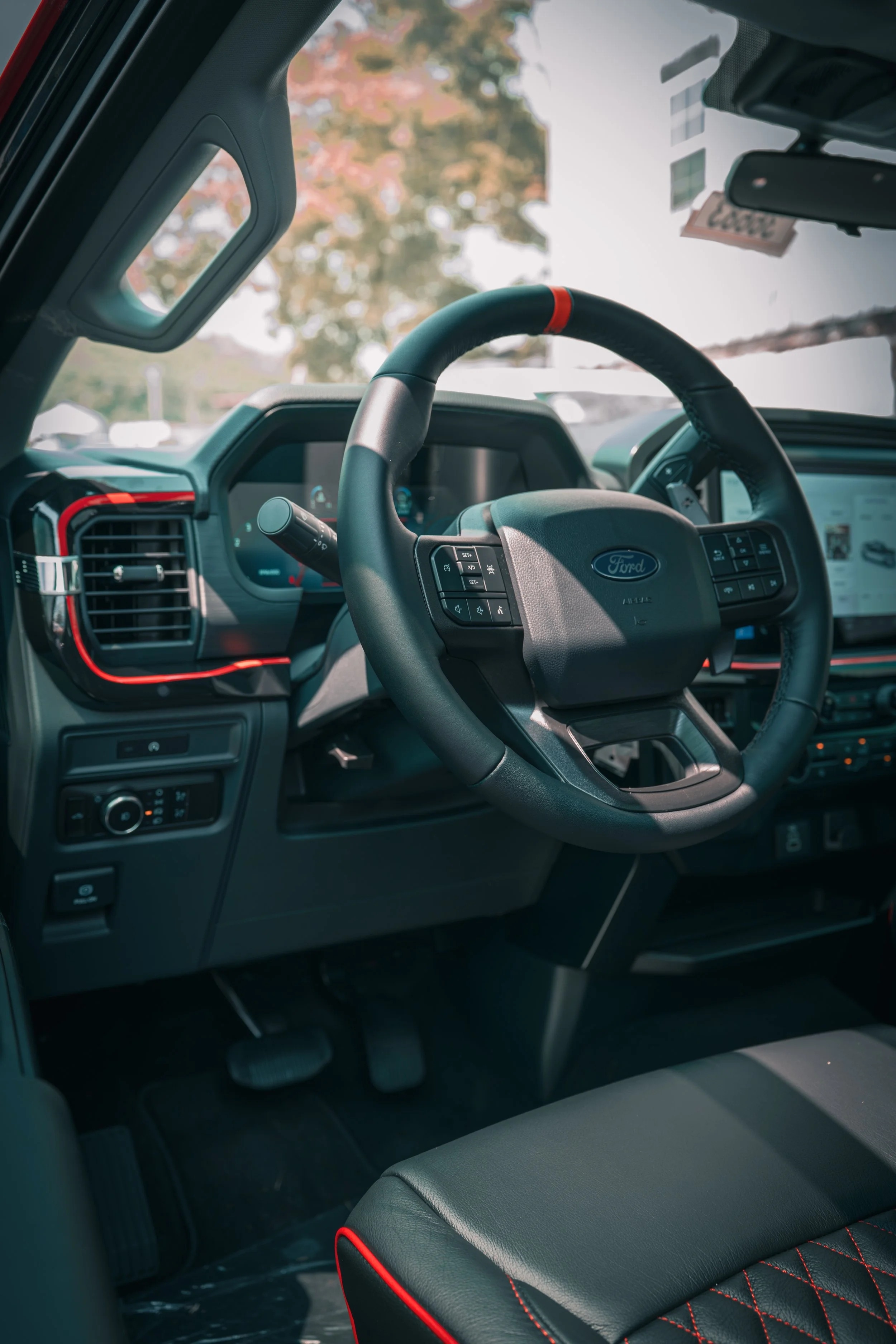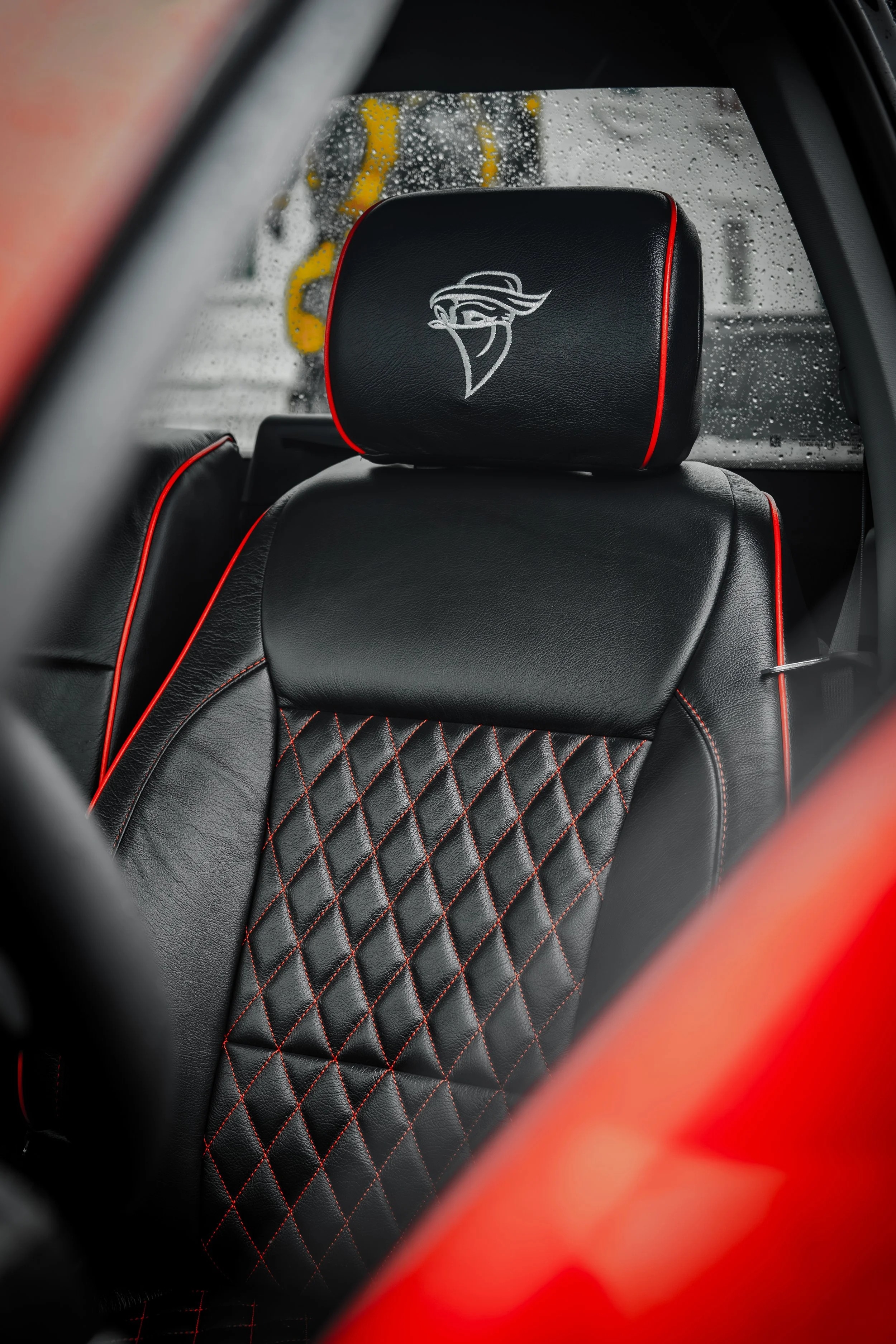 - Custom Black and Red Leather Seats With Custom Embroidery