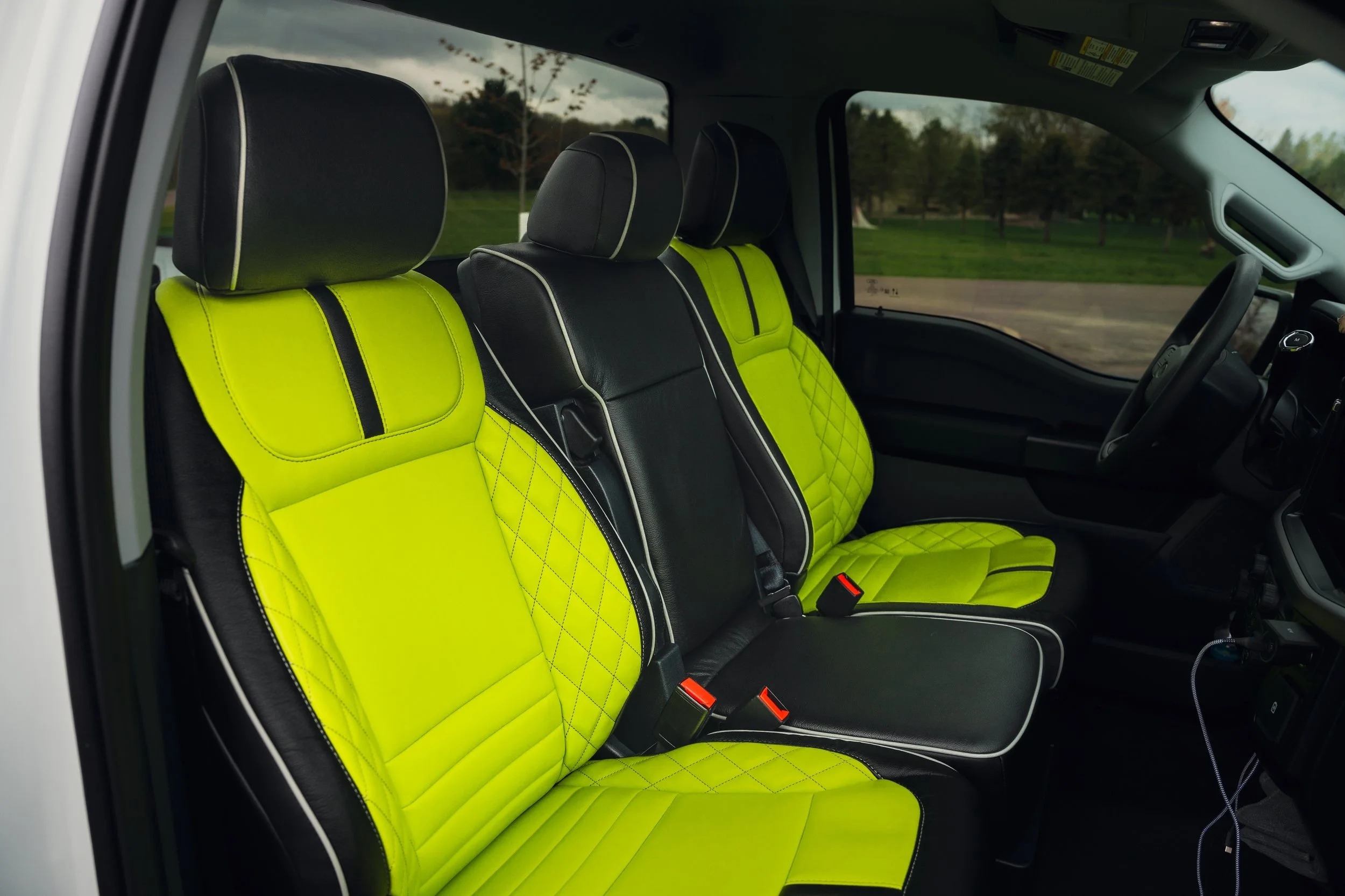 - Custom Black and Lime Green Leather Seats
