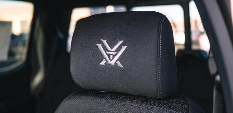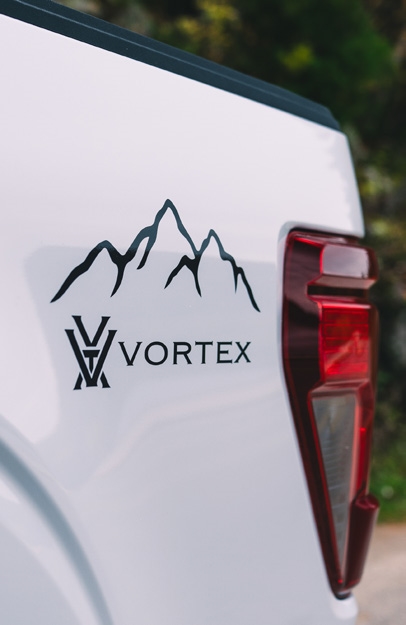 Includes: Vortex sunglasses, 10x42 Diamondback binoculars, trailer hitch cover, challange coin, and insulated mug.